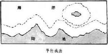 當領海基線為低潮線時,由基線各點按領海寬度的距離向與海岸大體走向垂直的方向平行外移,使領海的外部界限與基線完全平行。