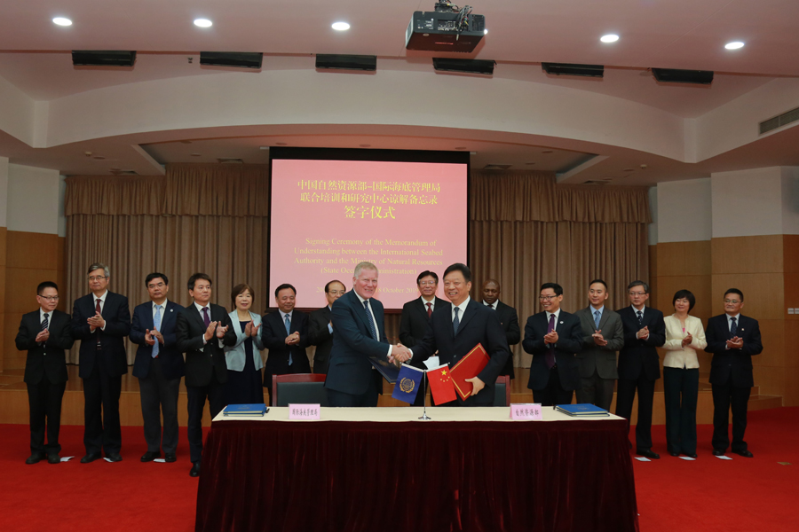 10月18日,自然资源部(国家海洋局)在京与国际海底管理局签订了《中国自然资源部与国际海底管理局关于建立联合培训和研究中心的谅解备忘录》。自然资源部党组成员、国家海洋局局长王宏和国际海底管理局秘书长迈克·洛奇代表双方签约。中央外办、外交部、发改委、财政部的相关司局负责人出席了谅解备忘录签订活动。