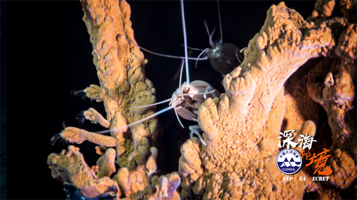 硫化物烟囱体上生活的贻贝、蠕虫和茗荷